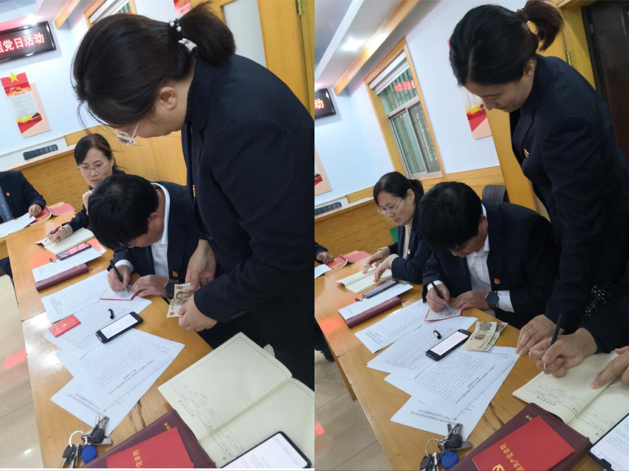 首先,全體黨員逐個向支部繳納了本月黨費,并進行了黨費收繳臺賬登記。