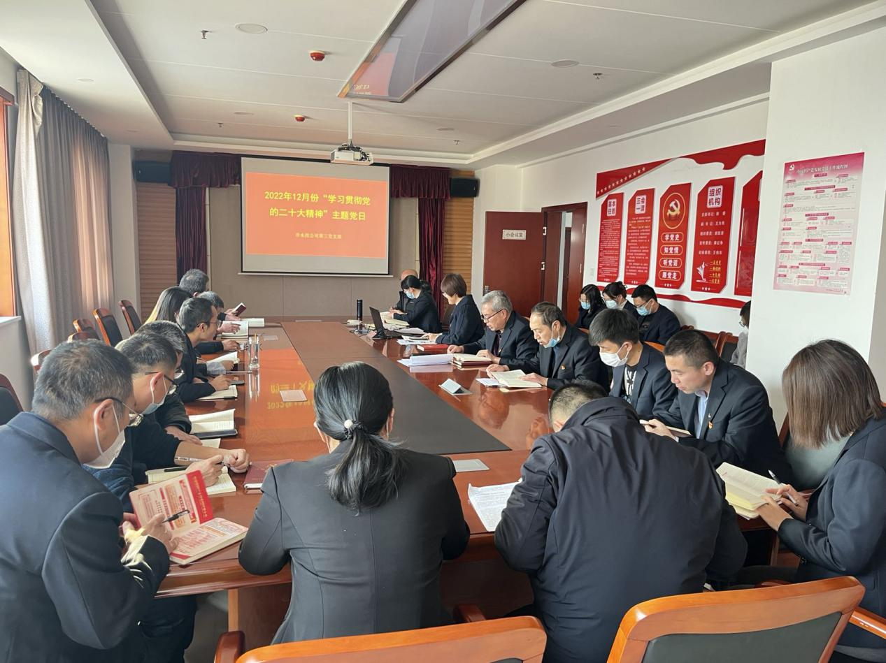 按照市委組織部《關(guān)于認真開展2022年12月黨支部主題黨日活動的通知》要求,結(jié)合公司黨委安排部署,12月5日下午,支部組織黨員、各科室負責人和群眾代表開展了“學習貫徹黨的二十大精神”主題黨日活動。