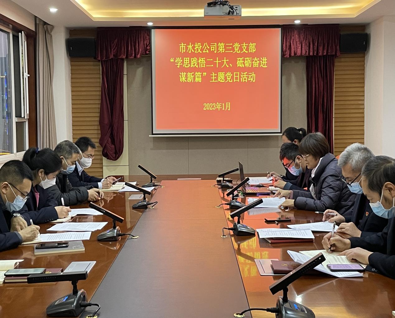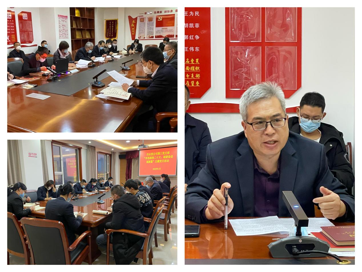 按照市委組織部《關(guān)于認(rèn)真開(kāi)展2023年1月黨支部主題黨日活動(dòng)的通知》要求,結(jié)合公司黨委安排部署,1月3日下午,支部組織黨員、各科室負(fù)責(zé)人和群眾代表開(kāi)展了“學(xué)思踐悟二十大、砥礪奮進(jìn)謀新篇”主題黨日活動(dòng)。