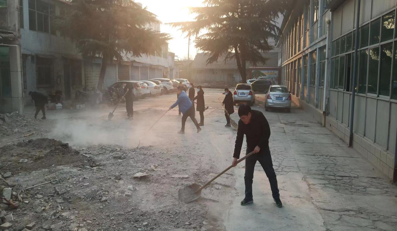 會(huì)后,為營造干凈整潔的辦公環(huán)境,支部組織全體黨員對公司部分南樓拆除后,剩余建筑垃圾進(jìn)行了打掃清理。