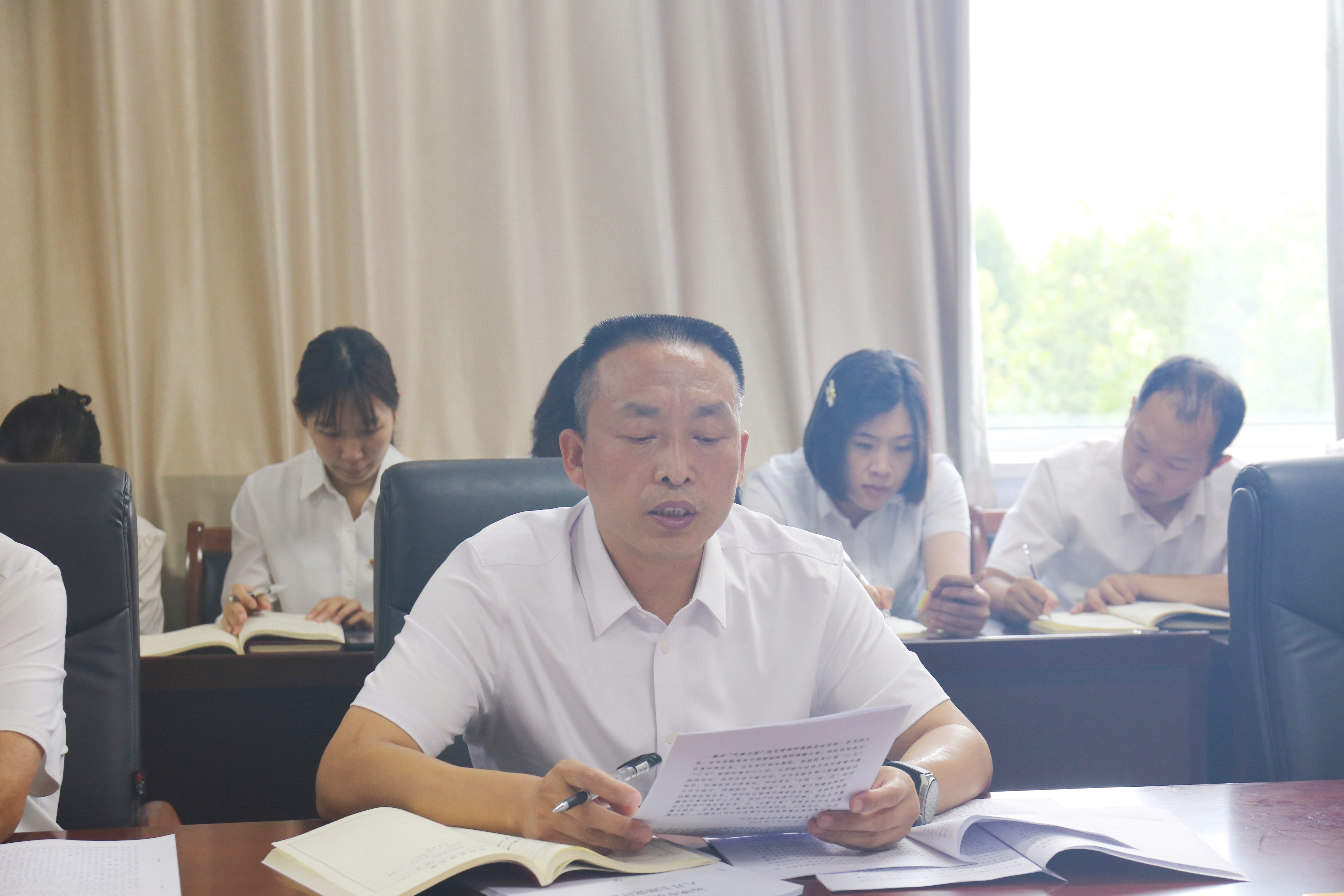 會上支部書記帶領(lǐng)全體黨員齊誦《黨章》總綱部分。支部黨員認真學(xué)習(xí)了習(xí)近平總書記在中共中央政治局第六次集體學(xué)習(xí)時發(fā)表的重要講話精神;習(xí)近平總書記在中央全面深化改革委員會第二次會議上發(fā)表的重要講話精神;習(xí)近平總書記對網(wǎng)絡(luò)安全和信息化工作作出的重要指示精神;習(xí)近平總書記在全國生態(tài)環(huán)境保護大會上發(fā)表的重要講話精神;第13期、第14期《求是》雜志刊發(fā)的習(xí)近平總書記重要文章;省委書記藍佛安在省委常委會會議暨省委主題教育領(lǐng)導(dǎo)小組會議上的講話精神;中共山西省委十二屆六次全體會議精神;市委書記丁小強在五屆市委第82次常委會(擴大)會議上的講話精神;中國共產(chǎn)黨運城市第五屆委員會第五次全體會議決議,會議還傳達學(xué)習(xí)了《中共運城市紀律檢查委員會關(guān)于10起黨員干部“吃拿卡要”破壞營商環(huán)境典型案件的通報》。