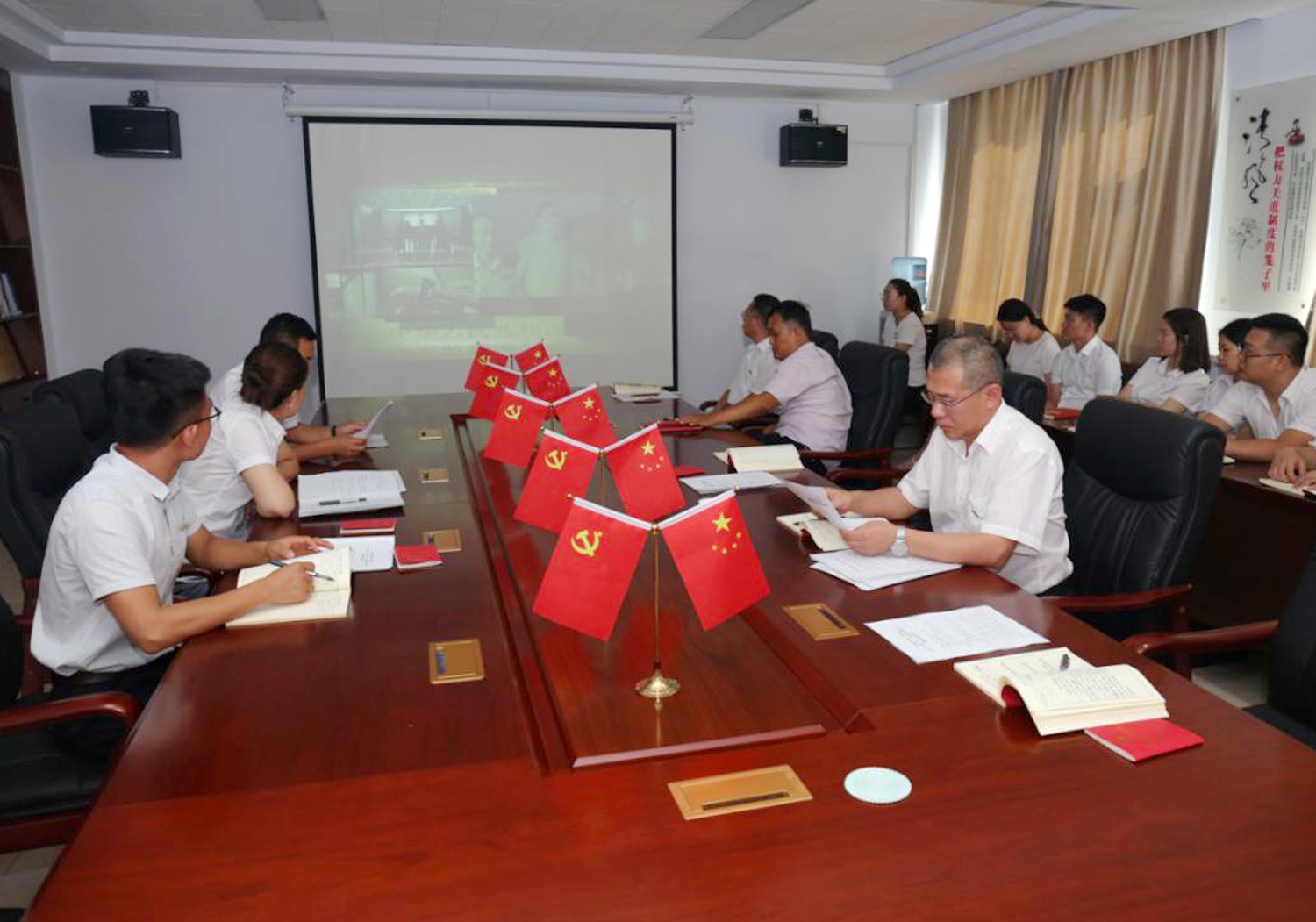 大家還集中觀看了《戰(zhàn)役一線黨旗紅》公益片和《叩問初心——貪欲之害》警示教育片,進(jìn)一步增強(qiáng)了黨性修養(yǎng)和法紀(jì)意識(shí)。
