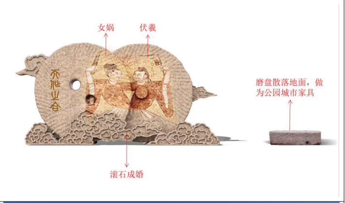 人祖華胥氏誕生出伏羲與女?huà)z兄妹,兩人想結(jié)婚生育后代,但又不好意思,便請(qǐng)求上天來(lái)決定:“如果天讓我們兄妹二人結(jié)為夫妻,天邊的云煙就聚合;如果不讓?zhuān)褪乖茻熒㈤_(kāi)。”剛說(shuō)完,只見(jiàn)云煙全都聚合。于是人類(lèi)文化史上首先便出現(xiàn)了婚姻,兄妹結(jié)成夫妻,就是輩分婚,繁衍出整個(gè)中華人類(lèi),傳說(shuō)為“摶土造人”,《易經(jīng)》記載為“雷澤歸妹卦”。民間還有個(gè)傳說(shuō),兄妹二人站在首陽(yáng)山上,哥哥推陽(yáng)磨扇象天,妹妹推陰磨扇如地,向山下滾去,口里念念有詞:“兩扇磨盤(pán)要是合在一起,而且天在上、地在下,咱倆就結(jié)婚。”沒(méi)想到,這兩扇磨盤(pán)滾著滾著就合在了一起,而且天上地下,便應(yīng)了“天作地合”。結(jié)婚時(shí),女?huà)z仍然害羞,便用草編扇子,扇住臉面。后世婚姻,女子仍使扇子遮羞,用紅綢蓋頭。