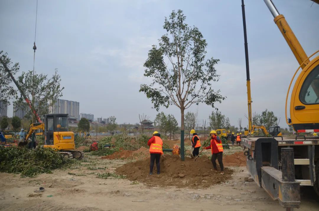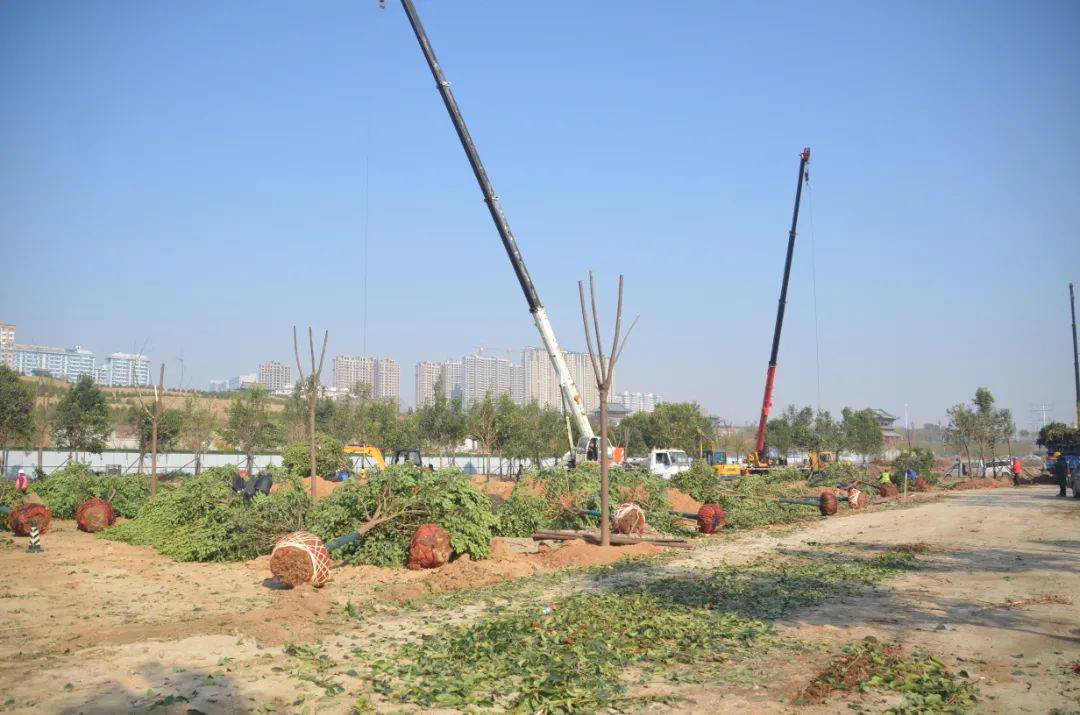 施工現(xiàn)場(chǎng),大型機(jī)械集中作業(yè),挖掘機(jī)、裝載機(jī)、吊裝機(jī)和運(yùn)輸車來(lái)回穿梭,九十余名工人辛勤勞作,相互配合,干勁十足,按設(shè)計(jì)規(guī)定放線挖坑、吊裝樹木、培土壓實(shí),防護(hù)林建設(shè)有序進(jìn)行。栽植過(guò)程中,多次討論研究,結(jié)合鹽池生態(tài)環(huán)境,統(tǒng)籌考慮,因地制宜選擇當(dāng)?shù)卦灾矘浞N,目前已種植國(guó)槐、榆樹、大葉女貞、紅葉石楠、大葉黃楊、金森女貞、麥冬等各類喬灌木草種共計(jì)700余株,綠化種植面積2萬(wàn)多平米,綠化建設(shè)將進(jìn)一步對(duì)鹽湖北側(cè)岸帶生態(tài)系統(tǒng)起到很好的防護(hù)作用。