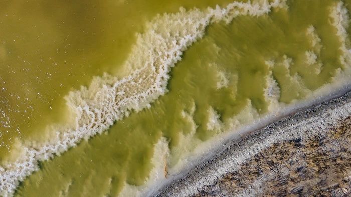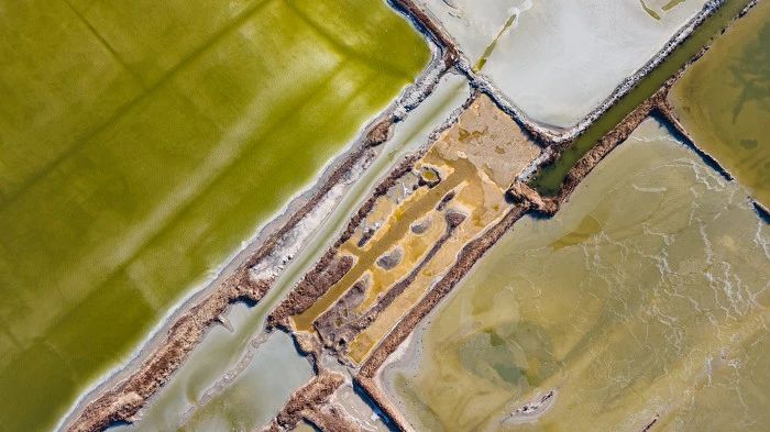 ▲鹽湖中的藻類和鹽水蟲繁殖,造成湖水變幻出各種顏色