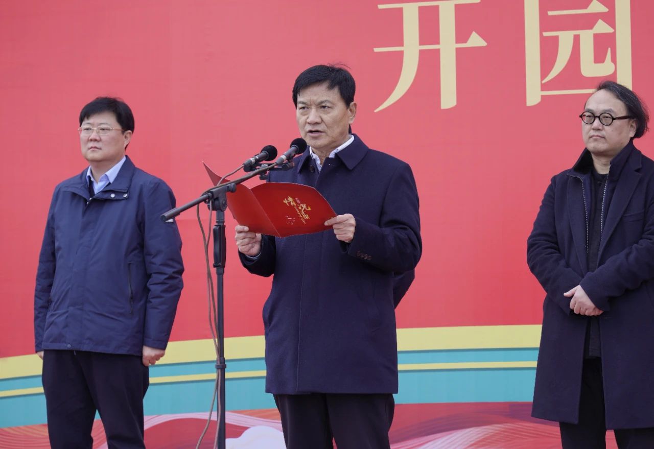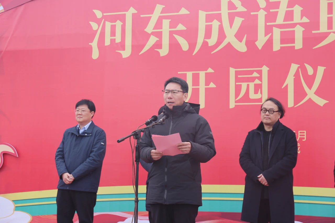 啟動儀式由運城市委宣傳部長王志峰主持,運城市文化和旅游局黨組書記、局長陳小光同志介紹了河?xùn)|成語典故園策劃創(chuàng)意及實體達效情況;市水務(wù)投資建設(shè)開發(fā)有限公司黨委書記、董事長兼市鹽湖生態(tài)保護開發(fā)中心副主任崔作銘匯報了河?xùn)|成語典故園建設(shè)概況;中國美術(shù)學(xué)院院長、黨委副書記高世名同志做了致辭;最后中共運城市委副書記、市人民政府市長儲祥好同志宣布河?xùn)|成語典故園開園,臺上領(lǐng)導(dǎo)和嘉賓共同推動啟動桿,百人齊聚,彩煙如虹當(dāng)空,裊裊綻放,共同見證了這一激動人心的重要時刻。