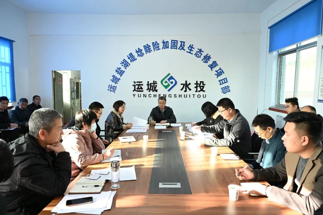 11月26日,市水投公司在鹽湖堤埝除險加固及生態(tài)修復(fù)項目部召開工作推進會。公司董事長薛文兵、總經(jīng)理楊素平、項目部全體人員及監(jiān)理單位、設(shè)計單位、施工單位相關(guān)負(fù)責(zé)人40余人參會。